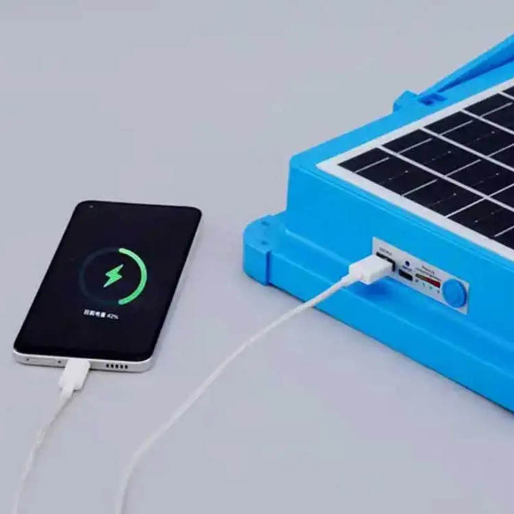 استفاده به عنوان پاوربانک: این محصول به خروجی USB مجهز است و میتوان از آن برای شارژ گوشی، تبلت و… استفاده کرد. - باتری: باتریهای این چراغ از نوع لیتیومی هستند که از طریق نور خورشید و برق شهری شارژ میشوند.