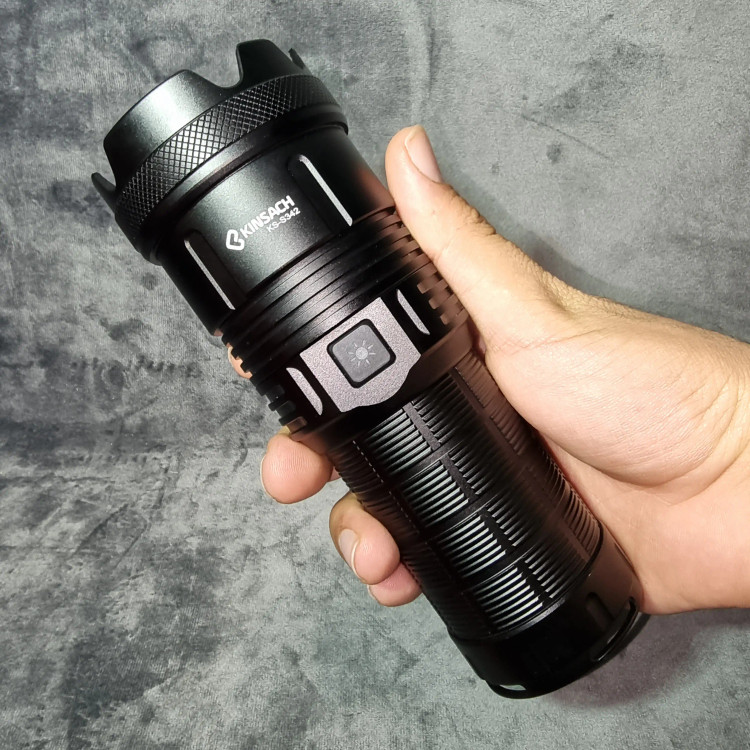 چراغ قوه کینساچ مدل KS-S342 زوم دار با قدرت روشنایی 5000 لومن و برد نور 1000 متر،یک چراغ قوه اقتصادی شکاری دارای بدنه آلومینیومی ضد ضربه و سایش و باتری پک 12500 میلیآمپر، دارای قابلیت ضد اب و شارژدهی 4 تا 6 ساعت، مناسب برای طبیعتگردی، کوهنوردی، کشاورزی، شکار و نگهبانی است.