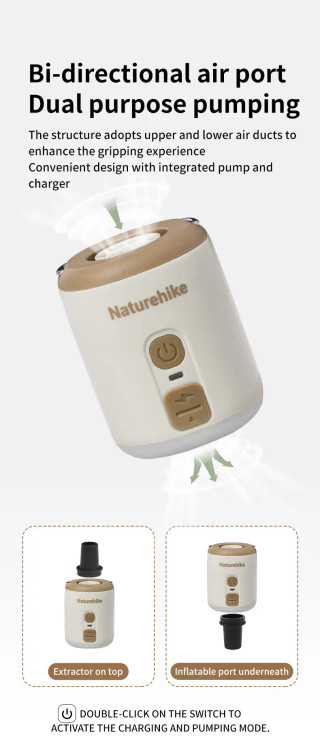 مینی جت فن نیچرهایک مدل CNK2300DQ022 چراغ کمپی یک وسیله کاربردی و ضروری برای هر طبیعتگرد است. این پمپ با وزن فقط 103 گرم و ابعاد 5 در 6 سانتیمتر، به راحتی در کوله یا کیف جا میشود و با توجه به اندازه جمعوجورش، یکی از سبکترین و کمحجمترین پمپهاست. این ویژگیها آن را به یک ابزار همیشه همراه تبدیل کرده که به سرعت و بدون زحمت وسایل بادی شما مانند زیرانداز، بالش و ننو را باد میکند.