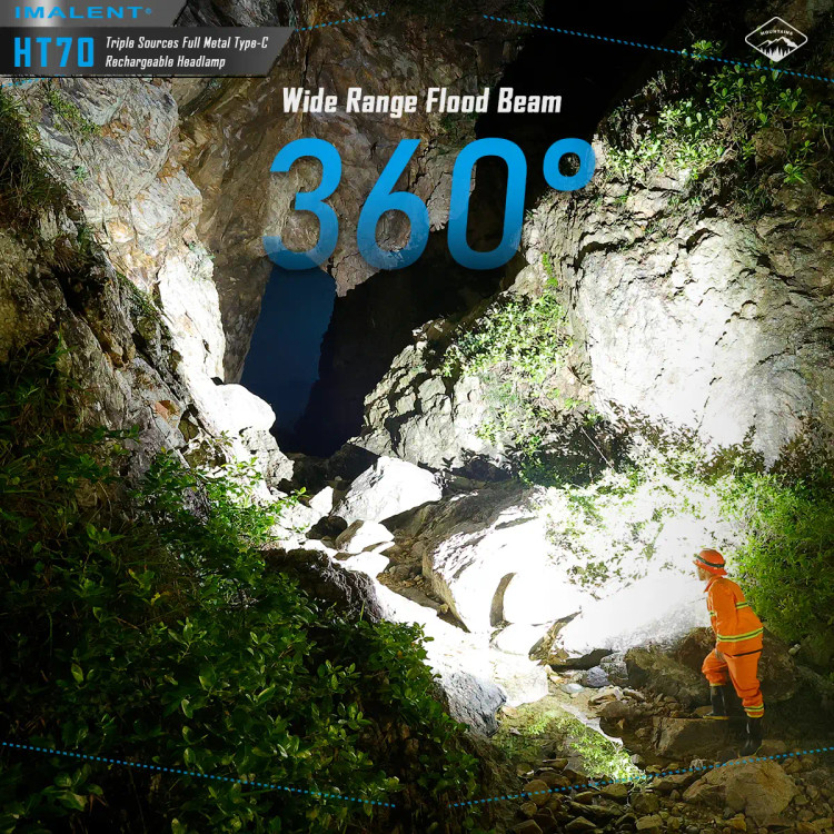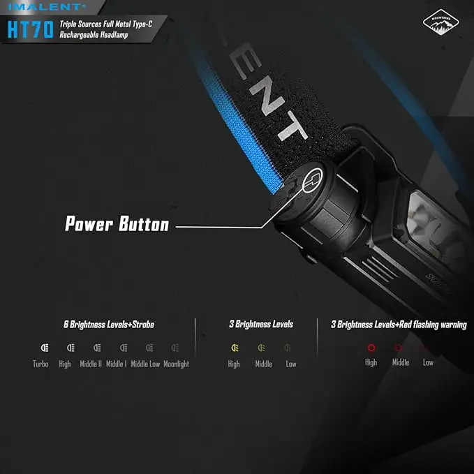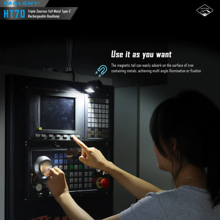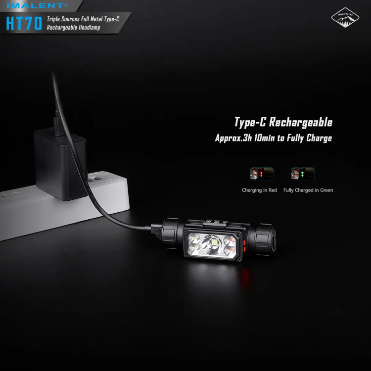 منبع تغذیه چراغ قوه پیشانی ایمالنت HT70 MHF یک باتری لیتیوم یون 5000 میلی امپری بسیار با کیفیت است که قابلیت شارژ مستقیم خود باتری را دارد و این غول با کیفیت را تا 350 ساعت روشن نگه میدارد، این چراغ پیشانی دارای دو سوییچ برای خاموش و روشن کردن و تنظیم حالت های نوردهی است و از دیگر ویژگی های این چراغ پیشانی چرخش 180 درجه ای در محور عمودی و قابلیت جدا شدن و اتصال به گیره کمری برای استفاده به عنوان چراغ قوه است.