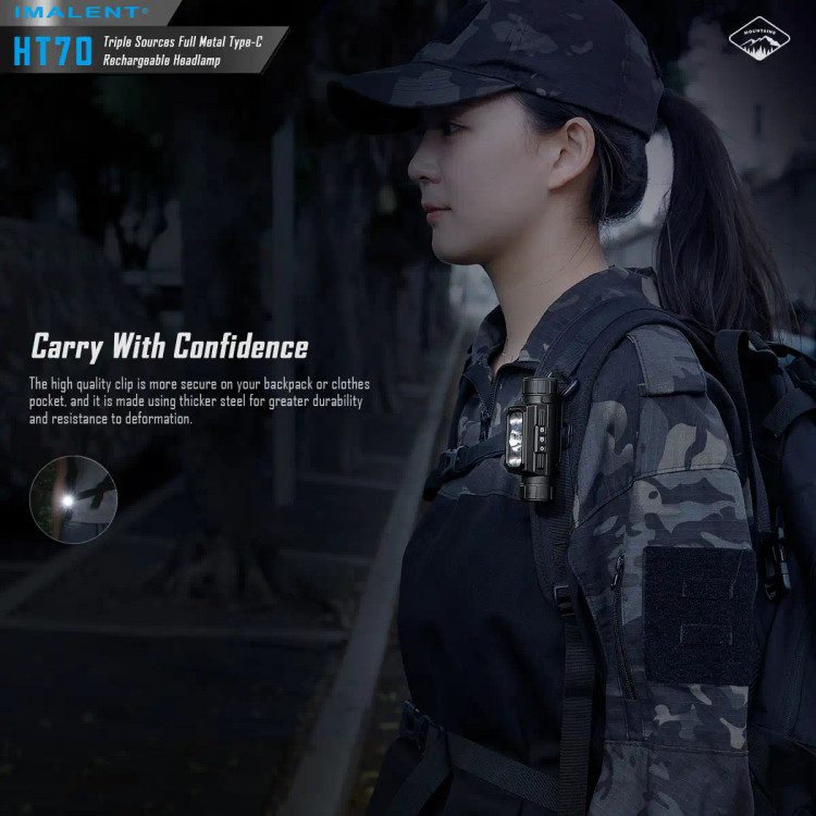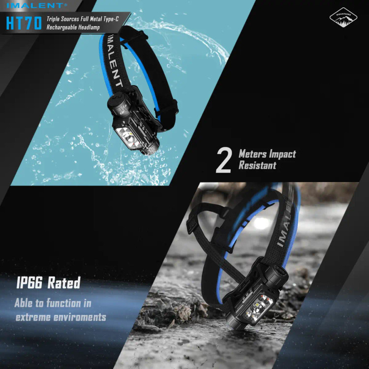 چراغ پیشانی ایمالنت مدل HT70 MHF یکی از قوی ترین و با کیفیت ترین چراغ پیشانی های کمپانی مطرح ایمالنت که همچون باقی محصولات این کمپانی از کیفیت بسیار بالایی برخوردار است،این چراغ پیشانی که به صورت چراغ قوه هم قابل استفاده است از بدنه ای از جنس آلیاژ آلومینیوم با روکش سخت انودایز شده با گرید نظامی ساخته شده است که تا 2 متر ضد ضربه و دارای گواهی استاندارد IP66 با مقاومت بالا در برابر نفوذ اب و گرد و غبار است.