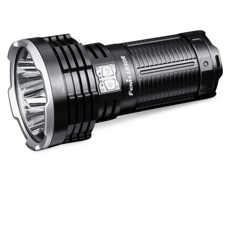 Fenix LR50R یک چراغ قوه فوق العاده پر قدرت است که برای جستجو و امداد و نجات ساخته شده است. چراغ قوه Fenix LR50R خروجی قابل توجه 12000 لومن را منتشر میکند و با قابلیت دید پرتو 950 متری، می توان از آن برای یافتن هر شیئی در تاریکی استفاده کرد. کلید های جانبی دوگانه از جنس فولاد ضد زنگ به شما این امکان را میدهد که به سرعت و از شش حالت مختلف روشنایی و حالت های کاربردی از جمله توربو فوری، strobe و SOS انتخاب کنید.
