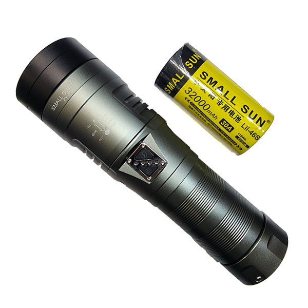 چراغ قوه اسمال سان مدل F95 با قدرت نور 10,000 لومن و برد 1300 متر، و باتری قدرتمند 32,000 میلیآمپری، به همراه یک دستگیره برای حمل آسان. به همراه عدسی قابل نصب روی چراغ قوه برای ایجاد آتش