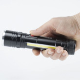 چراغ قوه پلیسی اسمال سان مدل ZY-T626 دارای جنس بدنه آلیاژ آلومینیوم محکم، و همین امر باعث شده است تا در برابر ضربه بسیار مقاوم باشد. این چراغ قوه دارای دو لامپ قوی که یک لامپ در جلو به عنوان لامپ اصلی در سه حالت نوردهی قوی، ضعیف و چشمک زن است که از حالت چشمک زن آن برای مواقع اضطراری و خطر استفاده می شود و یک لامپ در بغل چراغ قوه و دارای یک حالت نوردهی می باشد. از ویژگی مهم چراغ قوه پلیسی اسمال سان مدل ZY-T626 ضدآب بودن آن است و این امکان را به شما می دهد تا با خیال راحت در مواقع بارانی یا محیط مرطوب نیز از آن استفاده کنید، همچنین دارای قابلیت تنظیم کانون است و شما می توانید با دید گسترده تر محیط اطرافتان را نظاره گر باشید. چراغ قوه خوشدست اسمال سان از لحاظ برد نور و میزان روشنایی نیز در رتبه بالایی قرار دارد و برد نور آن 350 متر می باشد. چراغ قوه قوی اسمال سان دارای یک گیره فلزی می باشد که حالت خودکاری به چراغ قوه می دهد و باعث نصب راحت آن شده است. چراغ قوه زیبای اسمال سان مدل ZY-T626 می تواند بهترین انتخاب برای کوهنوردی، مسافرت و کمپینگ باشد.