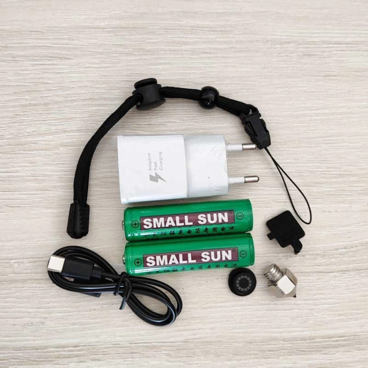 یکی دیگر از ویژگی های جالب و کاربردی این محصول قابلیت شارژ ان با شارژر تایپ سی هست که همراه کابل و اداپتور همراه خودش دارد. از ان جا که طراحی این محصول برای شرکت اسمال سان از اهمیت بالایی برخوردار بوده است، علاوه بر کیف قابل حمل و بند نگهدارنده یک عدد اداپتور، کابل شارژ، شیشه شکن و وسایل یدک اضافه براش گذاشته است. برای شارژ این محصول پر قدرت حدود 5 تا 6 ساعت زمان نیاز هست البته برای شارژ اولیه هم حدود 8 تا 10 ساعت زمان نیاز دارد. رنگ نور محصول مورد نظر سفید یخی هست که کیفیت نوری بسیار بالایی دارد.